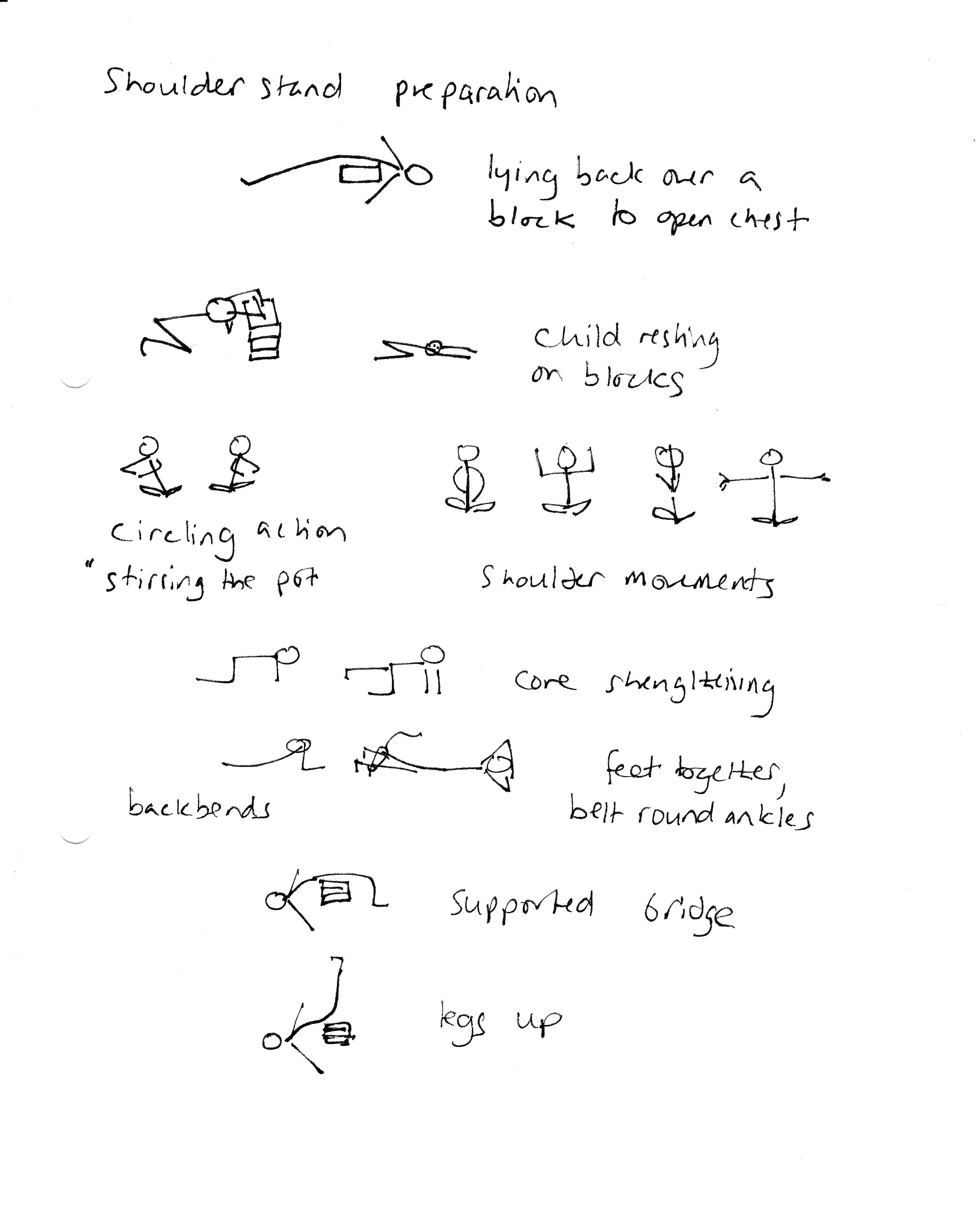 We opened our chests lying back on over a yoga block. We did some warm ups and strength work for the shoulders, and then practised coming up onto the shoulders and arms in bridge.