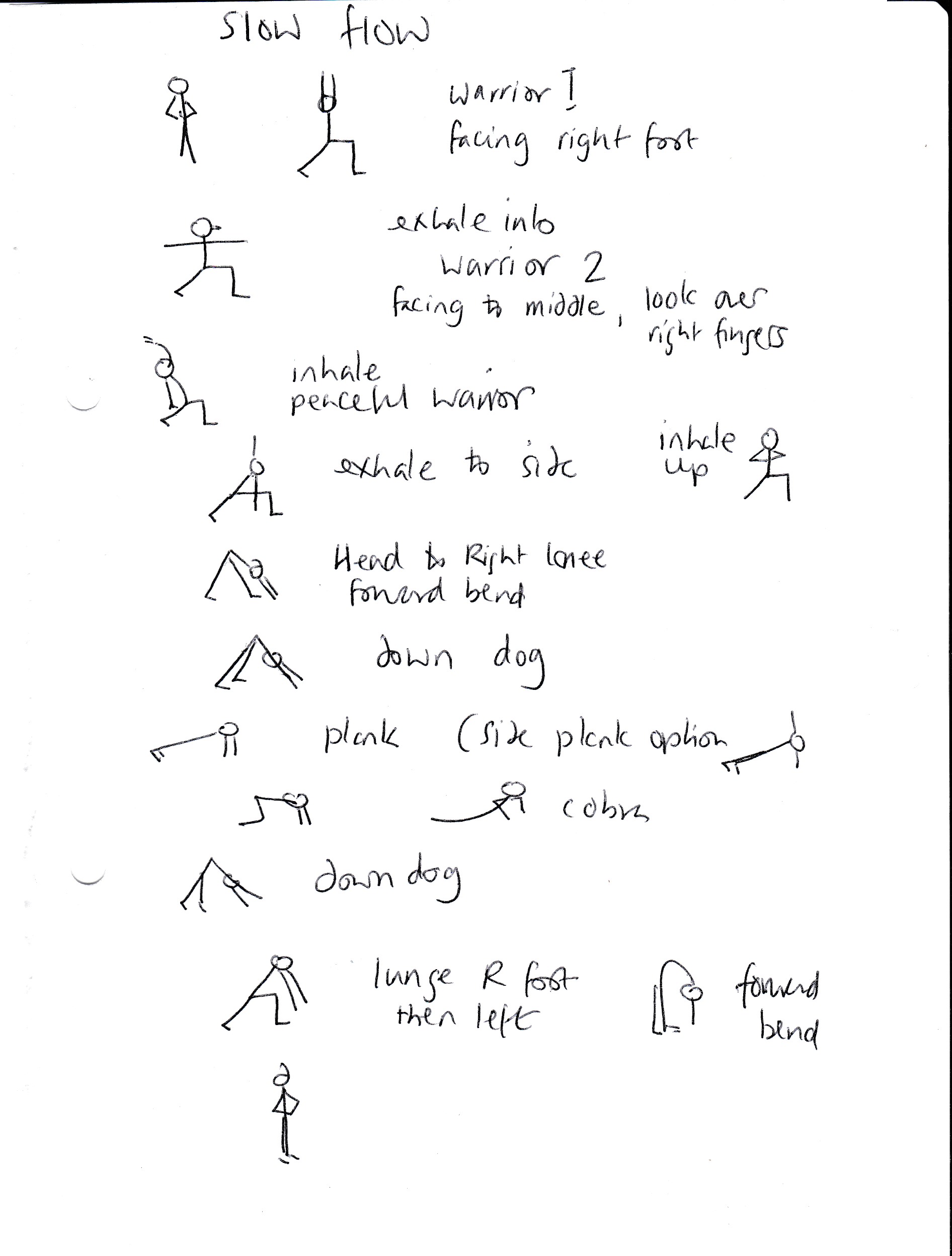 At the end of this term, I have included a 10 minute or so slow flow near the end of each class, basing them around postures we have been working on. This week’s included Warriors one and two, a bent knee version of triangle and cobra. There is always the option of adding others in, such as the side plank.